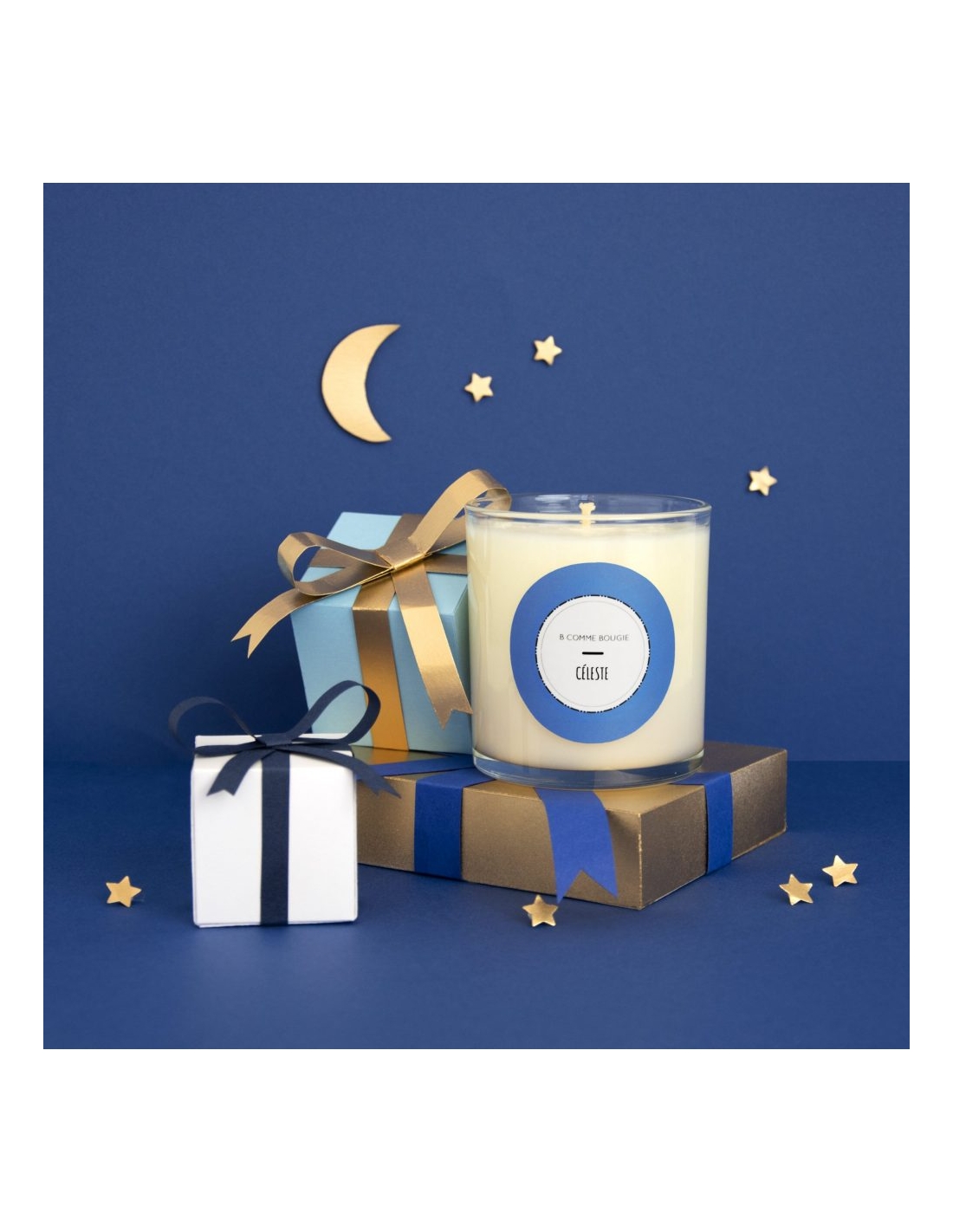Au coin du feu, la veille de Noël, allumez notre bougie Céleste à côté de votre sapin où les rênes et le Père Noel s’arrêteront pour déposer vos cadeaux. Un peu de cannelle et d’orange embaumeront votre salon pendant ce mois festif et froid !